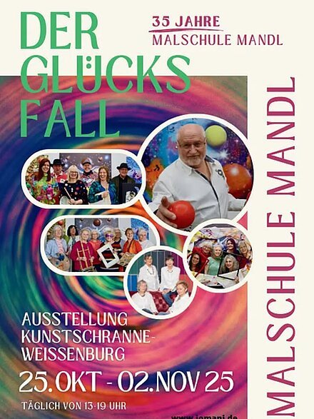 In der Kunstschranne Weißenburg findet vom 25.10. bis 02.11.2025 die Jubiläumsausstellung „Der Glücksfall“ anlässlich des 35-jährigen Bestehens der Malschule Mandl statt. 26…