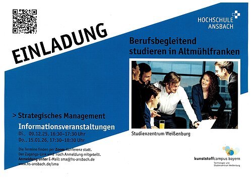 Der Termin findet per Zoom Konferenz statt. Der Zugangs-Link wird nach Anmeldung mitgeteilt. Anmeldung unter: E-Mail: sma@hs-ansbach.de, www.hs-ansbach.de/sma