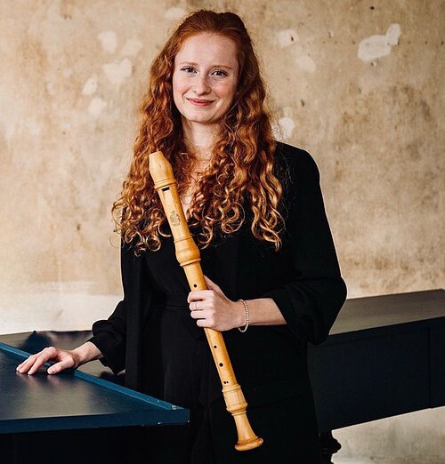Die Weißenburger Blockflötistin Fiona Zimmermann und Jiyeon Bang am Cembalo sind die Protagonistinnen der zweiten Konzerthälfte. Zimmermann bewegt sich an der Schnittstelle zwischen Alter Musik und zeitgenössischen Ausdrucksformen. Ihre musikalische Ausbildung begann in Weißenburg bei Claudia Esch und Justus Willberg, führte sie an die Hochschule für Musik Nürnberg und weiter nach Stockholm. Als Solistin und Kammermusikerin ist sie auf klassischen Konzertbühnen ebenso präsent wie in experimentellen Formaten; ihr Spiel war unter anderem im Bayerischen Rundfunk zu hören. Preise beim internationalen Hugo Wettbewerb sowie Stipendien des Lions Clubs Altmühlfranken, der Köthener Bachfesttage und der Studienstiftung des deutschen Volkes markieren ihren bisherigen Weg.