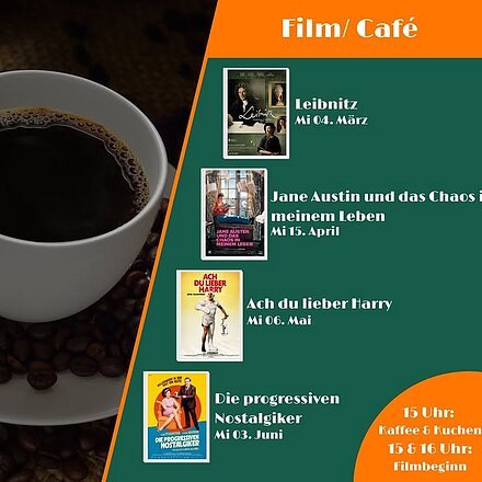 Am 04. März zeigen wir in unseren Film/Café "Leibnitz". Ab 15 Uhr gibt es Kaffee & Kuchen und um 15 und 16. beginnen dann die Filmvorführungen.